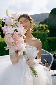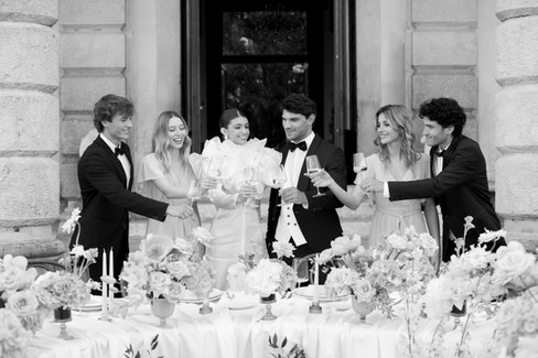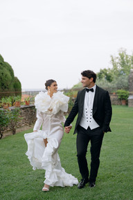 Villa Arvedi itself became an essential character in the wedding narrative — its terraces, statues, and grand façades provided a timeless backdrop for every photograph and every emotion. The harmony between architecture, fashion, florals, and atmosphere resulted in a celebration that felt intimate yet magnificently elegant.