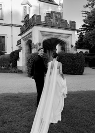 The ceremony took place in the castle gardens, marked by a grand, cinematic bridal entrance graceful, emotional, and timeless. As evening fell, the reception came to life by candlelight, lanterns, and glowing string lights, with the castle terrace transforming into a romantic film set under the stars.